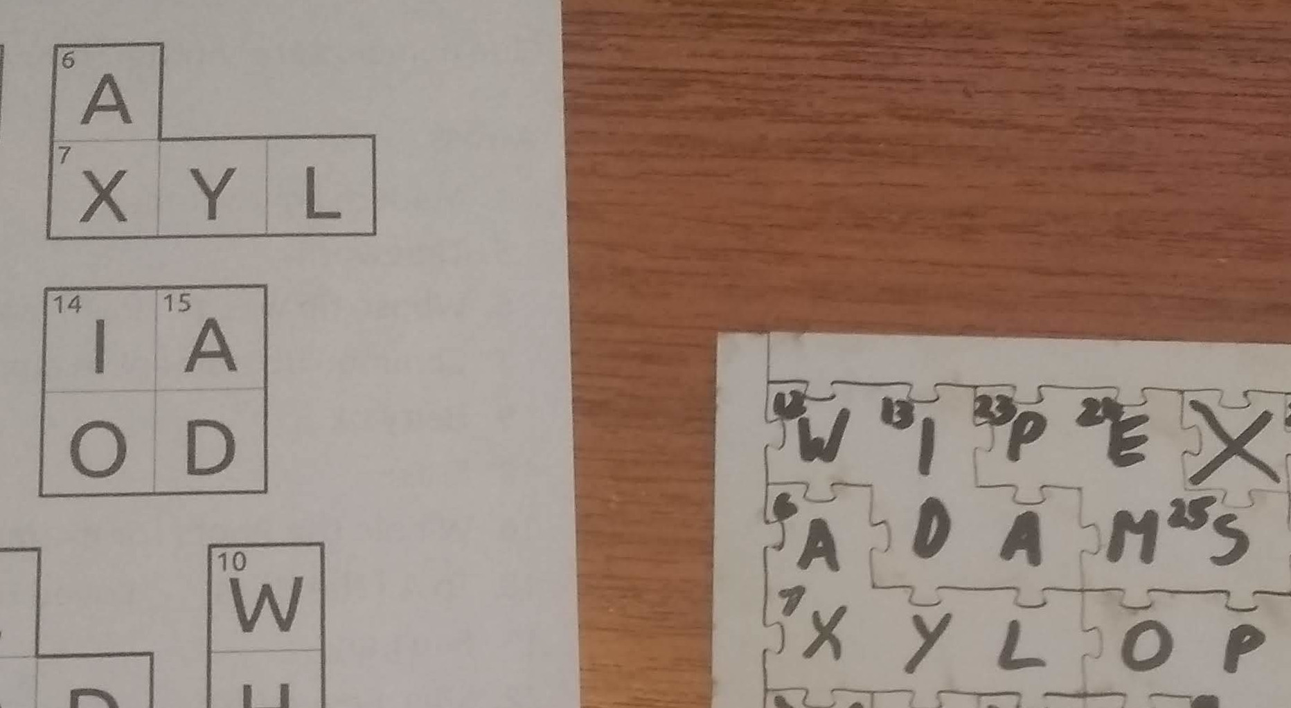 First prototype of dry-erase pieces arrives, but copying is way too fiddly. You have to find the right shapes, copy the letters and the numbers, and then solve. It takes longer to set up than to solve.